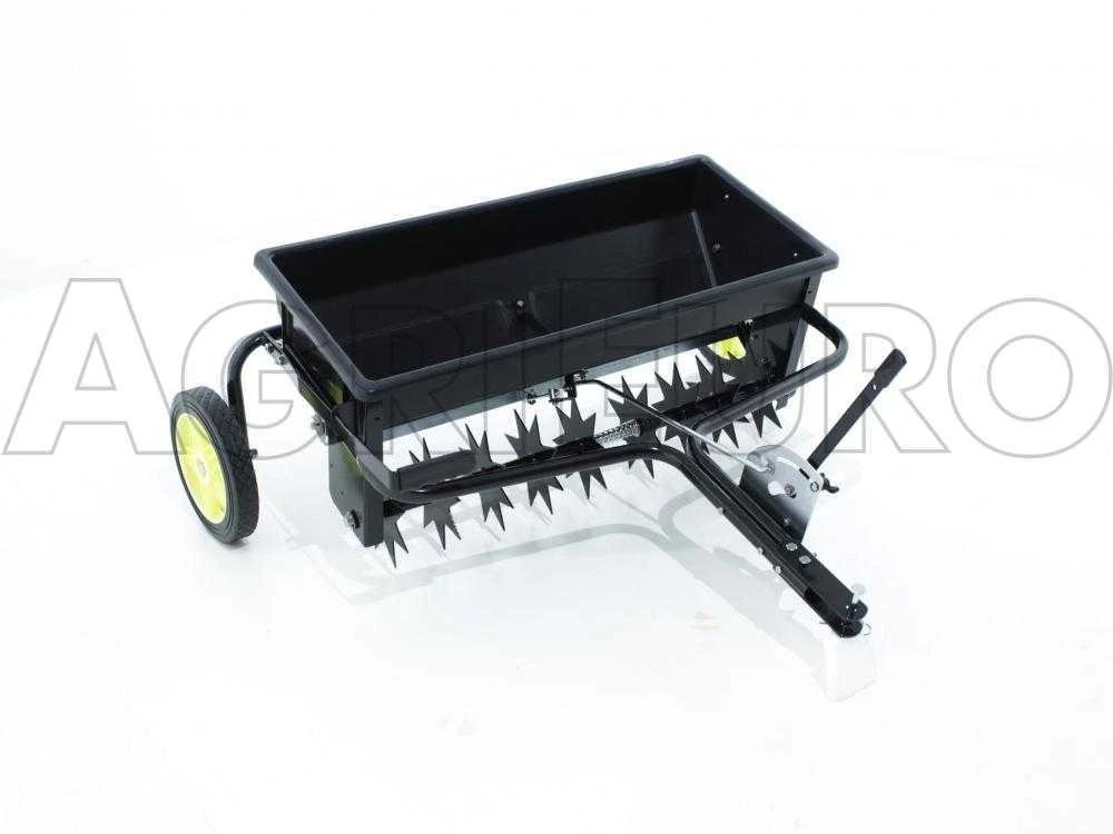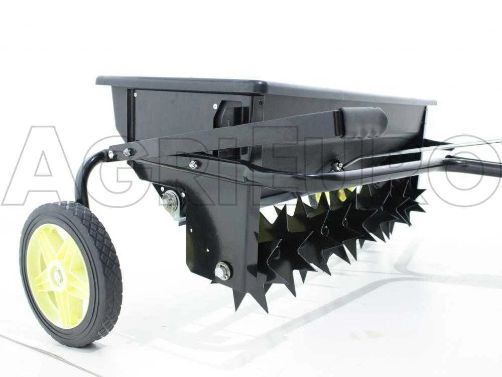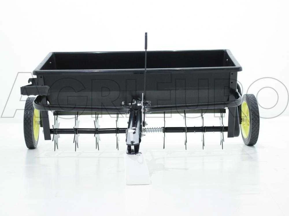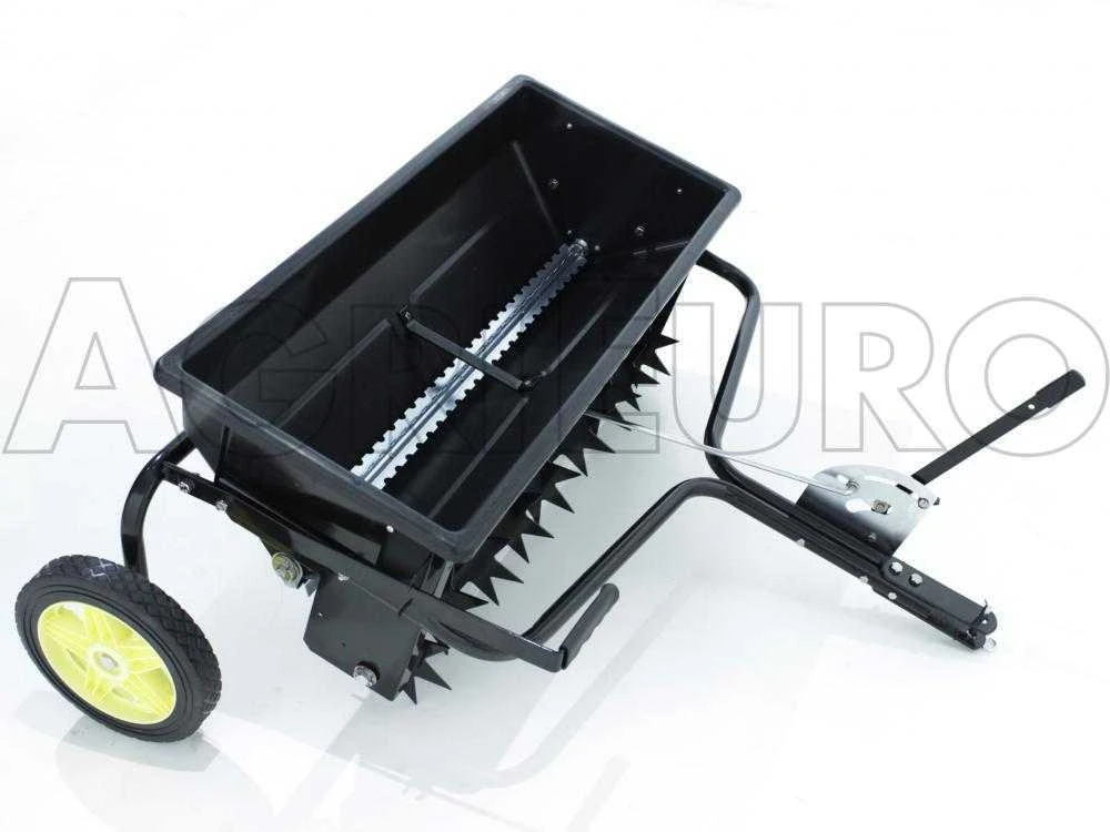 Le levier de réglage de l’ouverture s’effectue par degrés, permettant ainsi de rendre régulière la quantité d’engrais ou de semences à verser avec une extrême précision.
