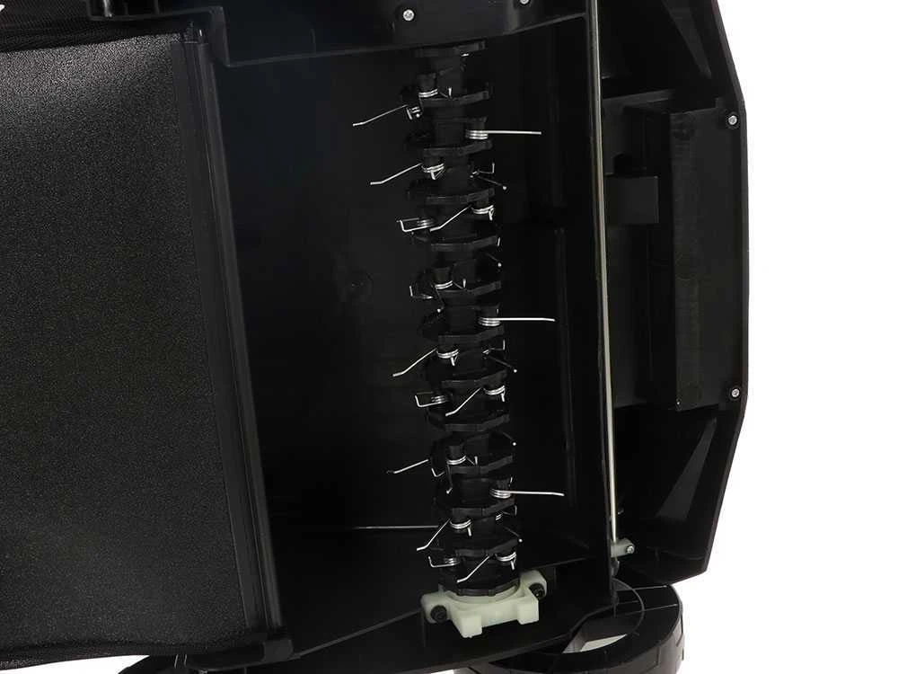 Avec ce rotor, le gazon est peigné de façon légère grâce à sa conformation à louchets en acier qui ratisse et prélève la couche molletonnée de mousse, anticipant ainsi la repousse.