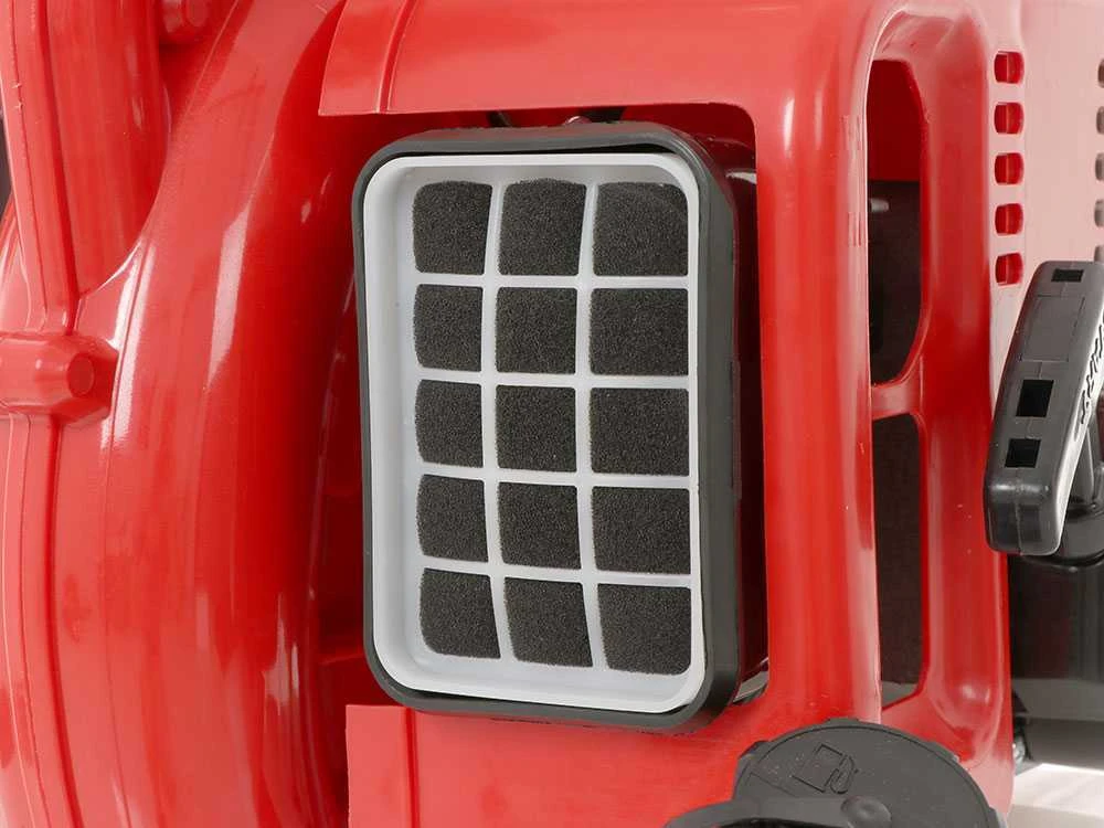 Ce souffleur est muni d’un moteur thermique EURO 5 à 2 temps à refroidissement par air de 59.2 cm3 de cylindrée avec 3.3 CV de puissance alimenté par mélange.