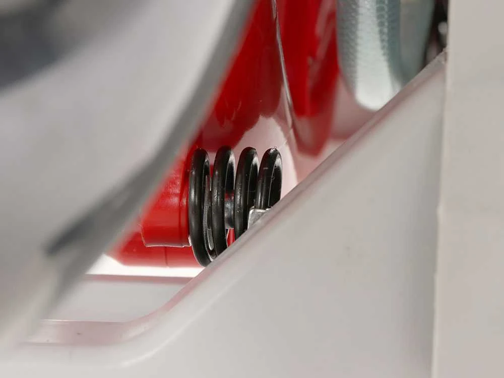 Le moteur est solidement attaché à la structure de la dossière au moyen de robustes amortisseurs en caoutchouc et à 1 ressort entre la structure et le moteur qui minimisent les vibrations transmises au travailleur en augmentant le confort d’utilisation.
