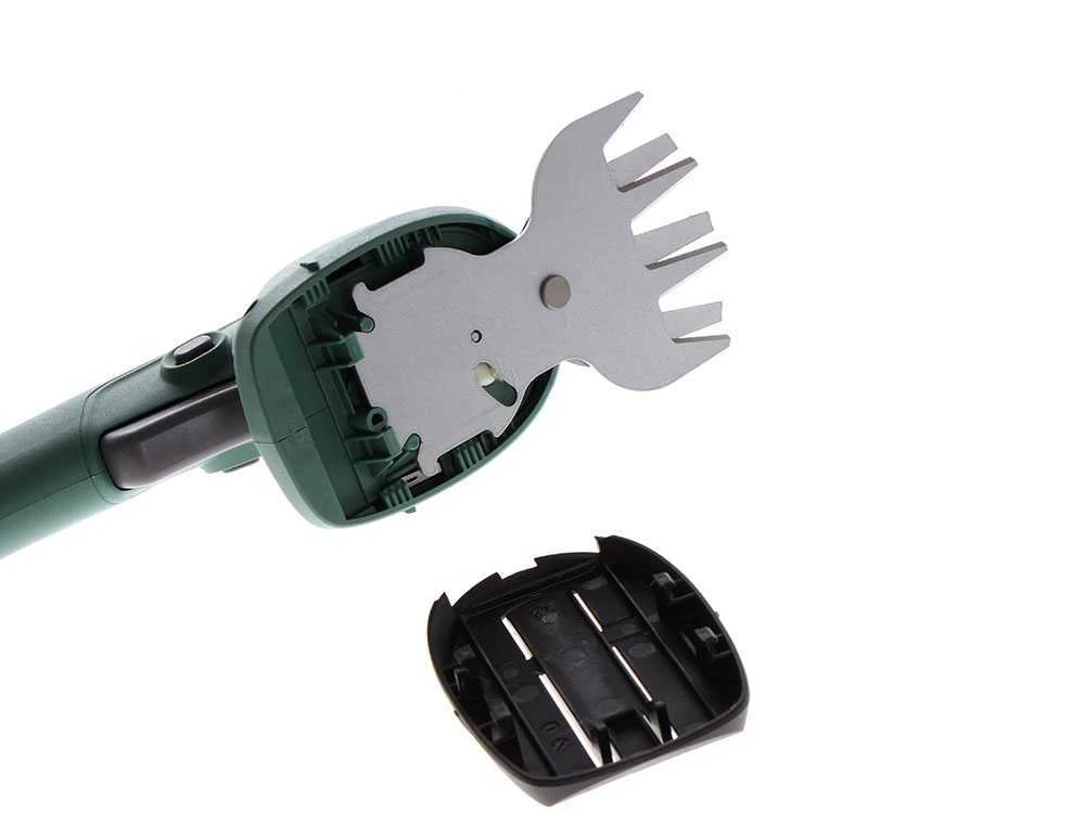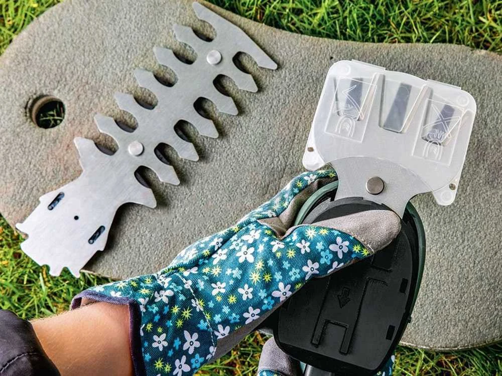 Inclus dans l’emballage, en plus de la lame classique de 8 cm de largeur pour la pelouse se trouve aussi une lame taille-haies de 12 cm de longueur et 8 cm de largeur. Grâce au système de changement rapide, il est possible de changer les lames rapidement et sans avoir besoin d’outils.