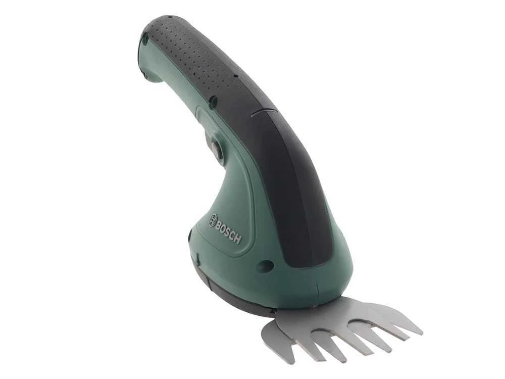 Cisaille à batterie Bosch EasyShear, un instrument extrêmement compétitif et de qualité, surtout pour son prix, utile pour couper et pour faire les finitions de la pelouse et des haies.