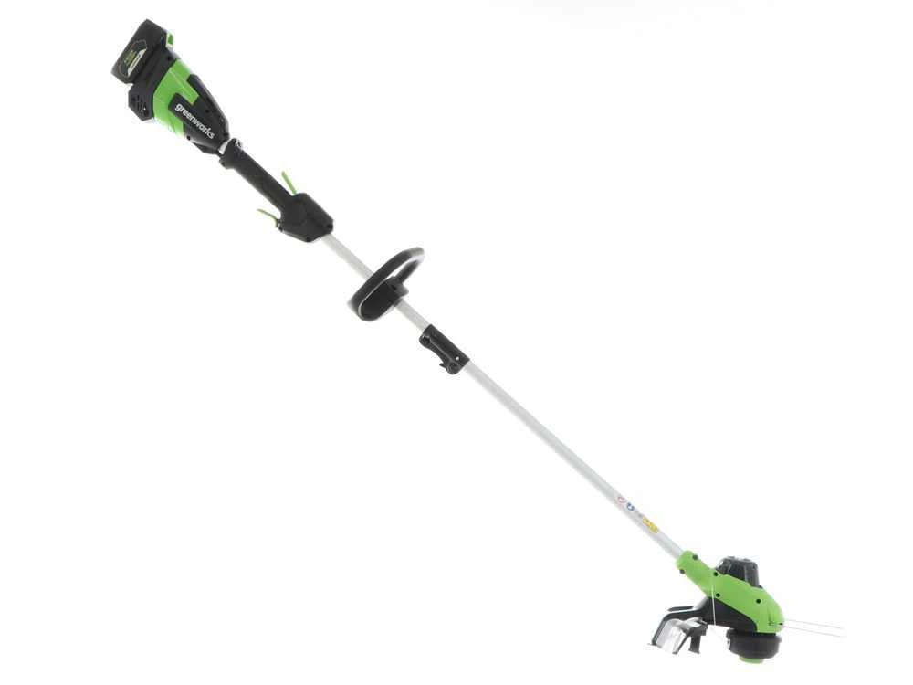 Le coupe-bordures G48ST8 de Greenworks permet de travailler dans le jardin sans devoir disposer d’une prise électrique à proximité, ni de câble ou de carburant.