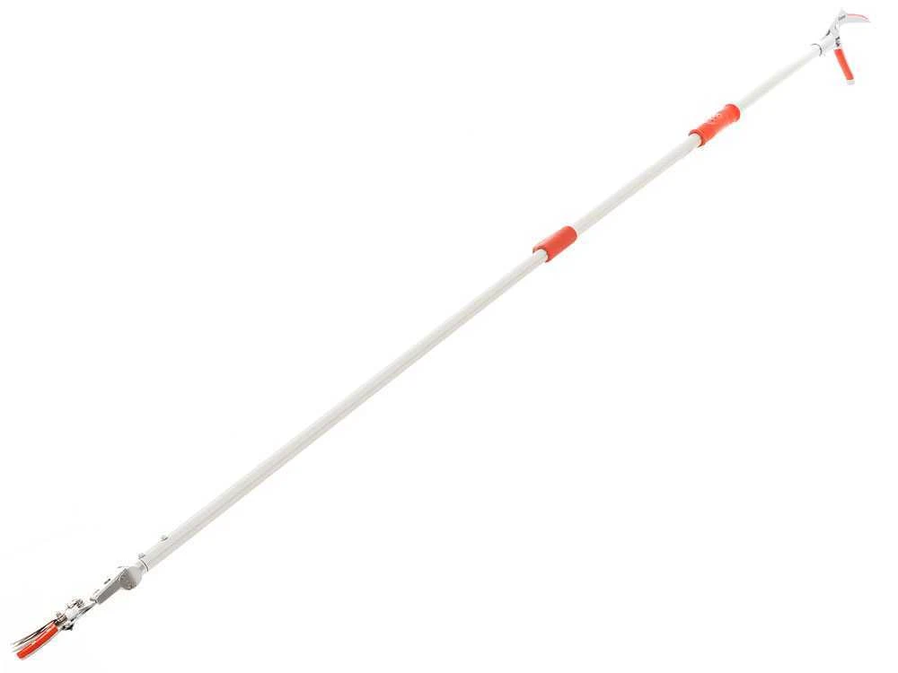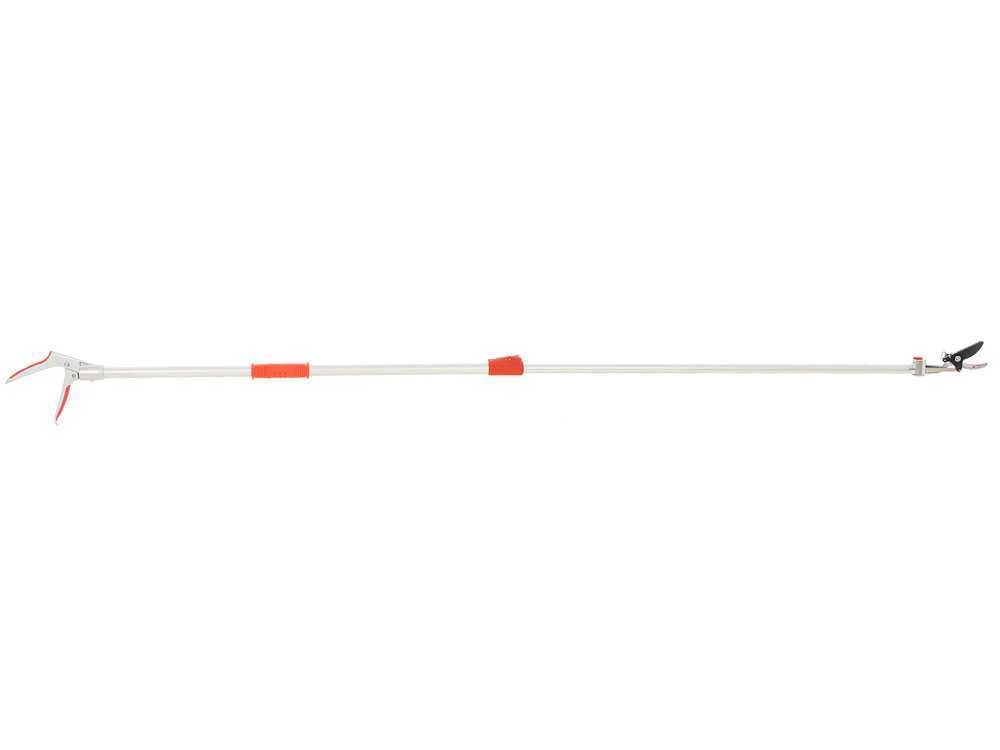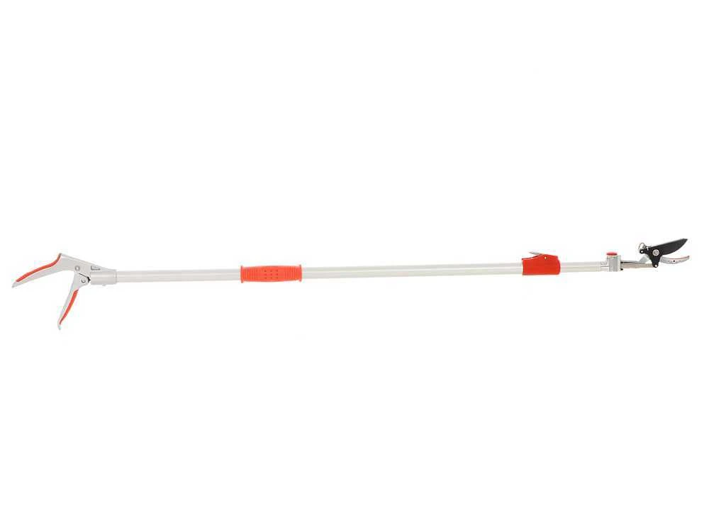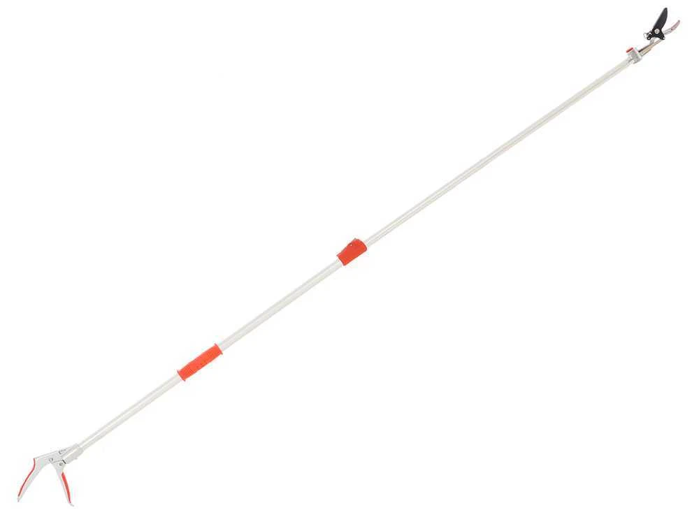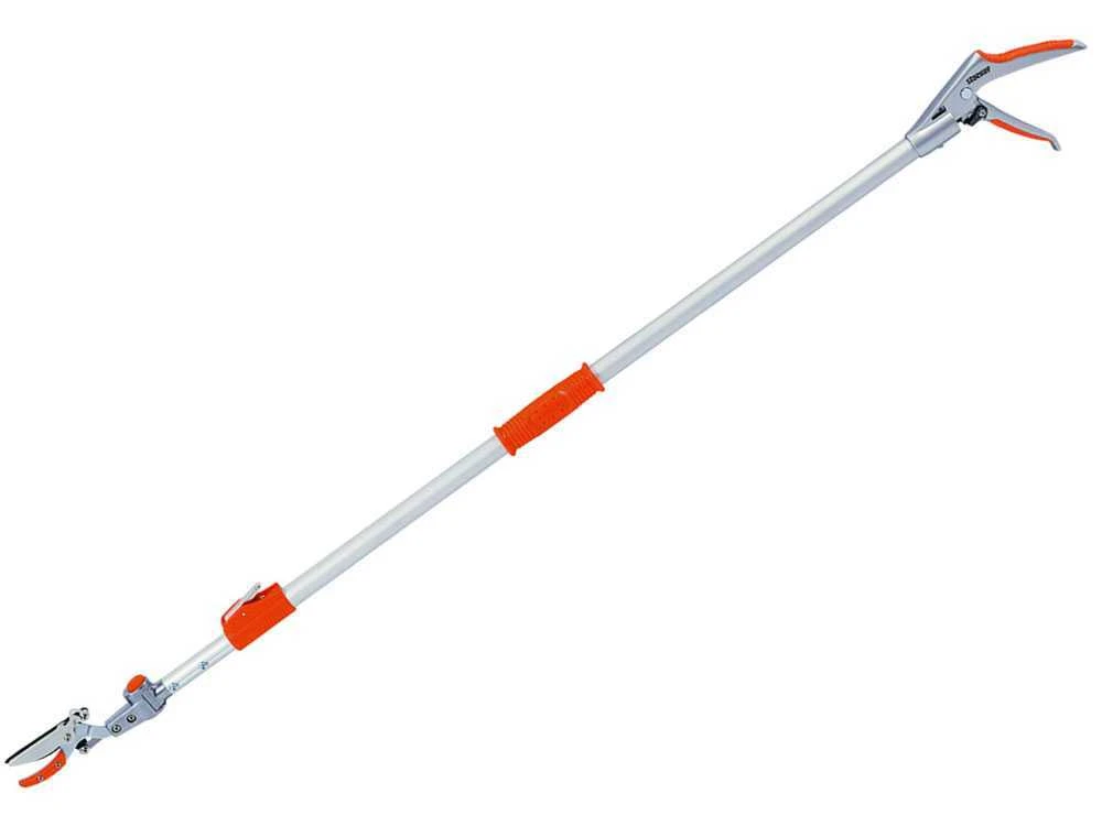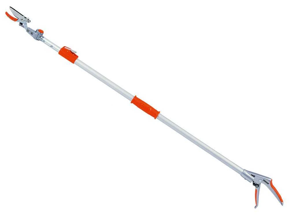Ce sécateur résulte extrêmement pratique et léger grâce au manche extensible en aluminium de 130 cm jusqu’à au moins 200 cm.