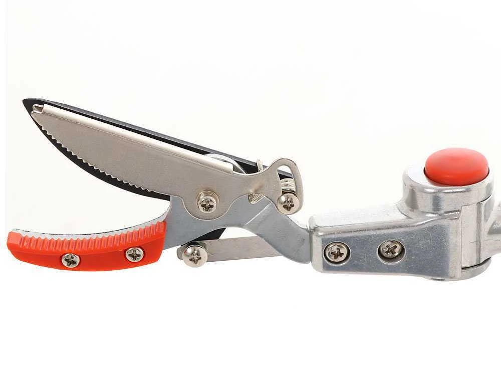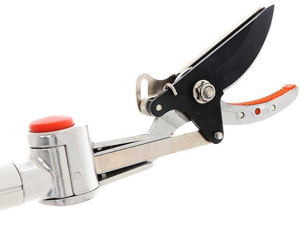 Il s’agit d’un coupe-branches orientable avec manche télescopique rotative. La tête de coupe est inclinable.