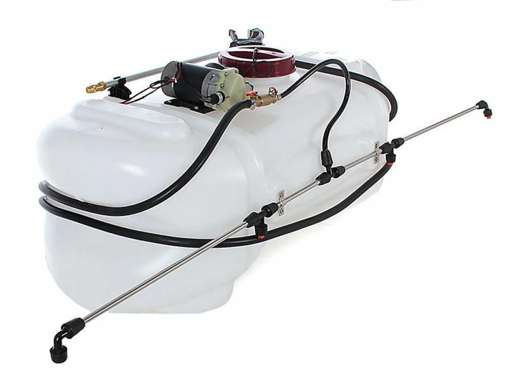 Cette cuve de pulvérisation est fournie avec les tuyaux et les raccords pour les deux accessoires. Donc elle vous sera livrée prête à l’emploi pour une utilisation immédiate, mise à part l’assemblage de son châssis. Nous vous rappelons qu’elle est fournis sans batterie. Grâce au câble fourni, vous pourrez relier la pompe à la batterie du moyen de transport que vous utiliserez pour déplacer la cuve, que ce soit un tracteur tondeuse autoportée ou un quad par exemple.