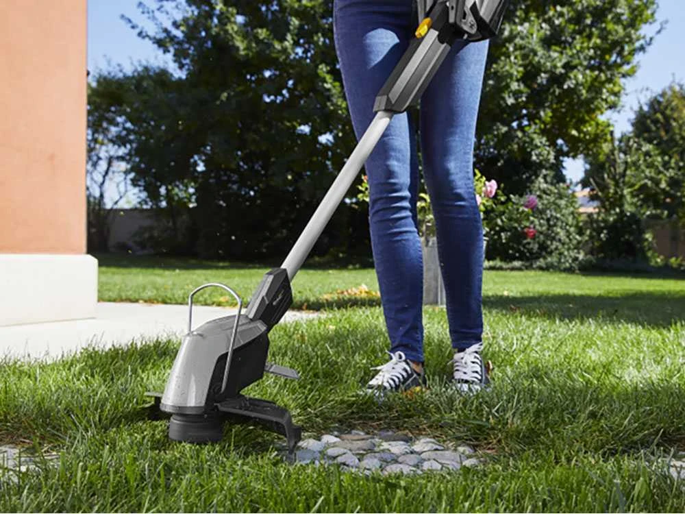 Le réglage de l’inclinaison de la perche et la rotation latérale de tête de coupe permettent une coupe parfaite même sur les bordures de vos gazons, maintenant par contre une position de travail toujours confortable. La batterie de 2,0 Ah est déjà incluse dans le produit et peut durer jusqu’à 20 minutes de travail continu. Le chargeur de batterie est de série.