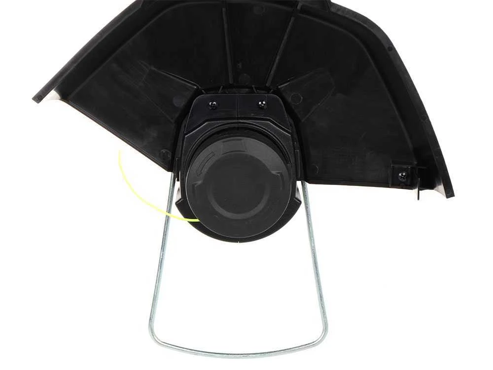 La tête de coupe de ce coupe-bordures dispose d’un angle de coupe variable grâce à sa tête inclinable et elle est munie d’un carter de protection dont les extrémités servent de lame de réglage pour le fil.
