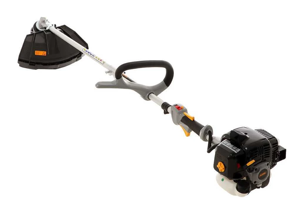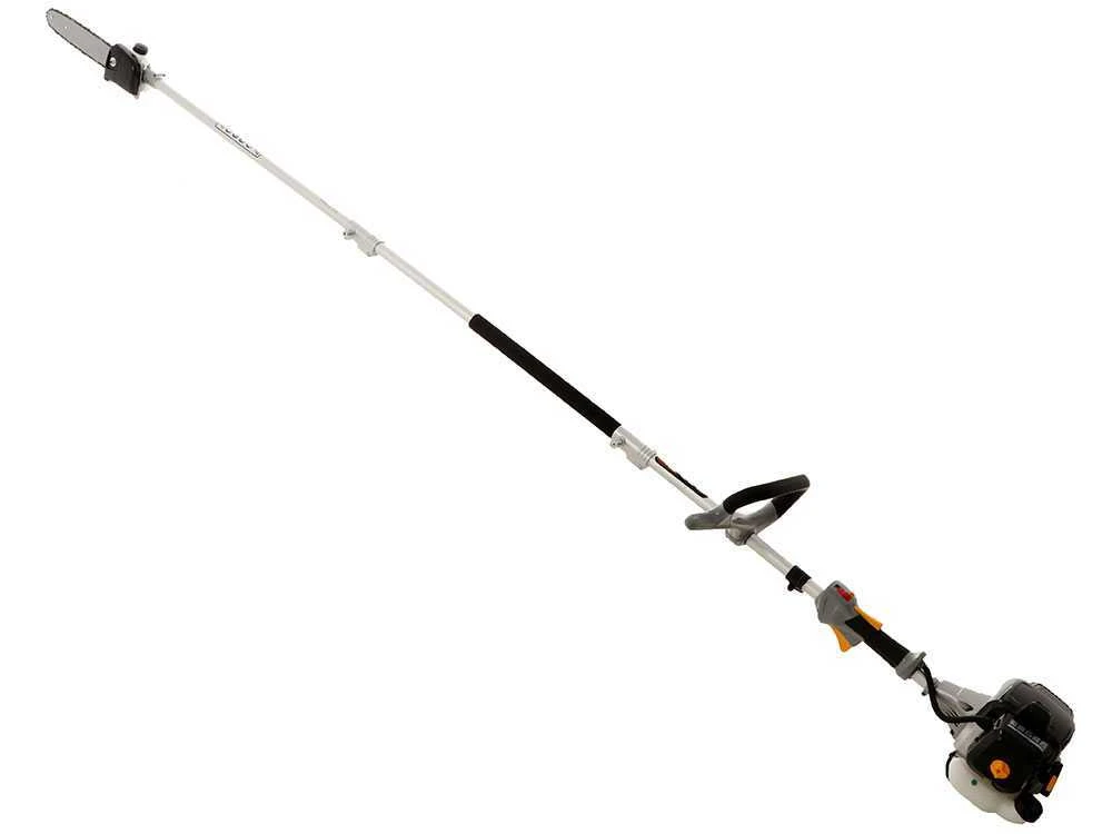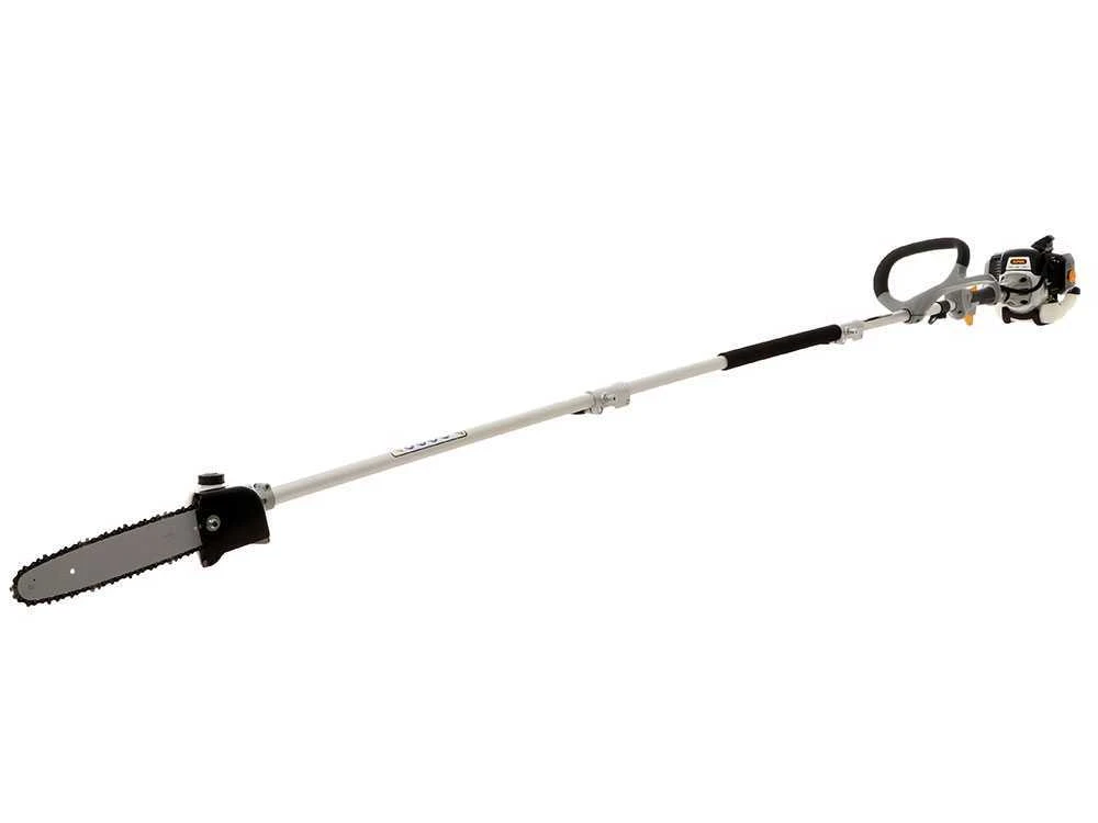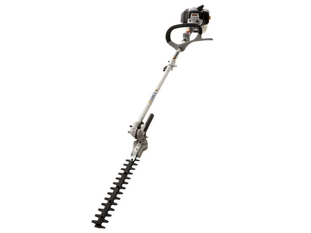 Débroussailleuse (avec disque et tête de coupe), perche d’élagage et taille-haie! le tout en un seul produit.