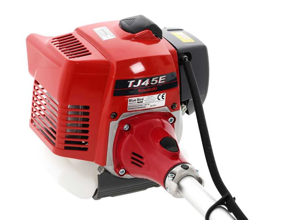 Le moteur Kawasaki TJ 45 E est un moteur 45,4 cm³ refroidit par air, 2 temps, à axe horizontal. Ce type de moteur est particulièrement connu pour son rapport optimal de puissance/poids, ce qui le rend d’une grande praticité lors des travaux intensifs et professionnels.