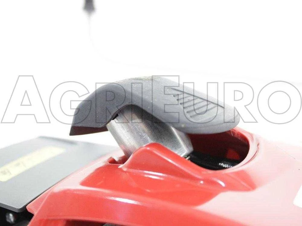 Le guidon est asymétrique, avec le bras gauche en position allongée et élargie, alors que le bras droit, celui manipulant les commandes de l’engin, est plus compact et proche de la perche. Cette configuration permet à l’opérateur d’utiliser la débroussailleuse dans une position confortable, en évitant d’être décalé par rapport à l’axe de la machine, pendant plusieurs heures consécutives.