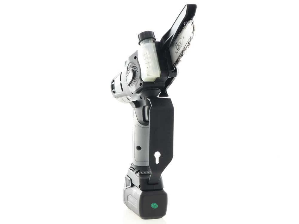 Elle a une chaîne de 1/4″ avec couvre-chaîne de protection, un guide de 5 « et une poignée ergonomique qui, grâce à la protection pour les mains, offre un plus grand niveau de sécurité.