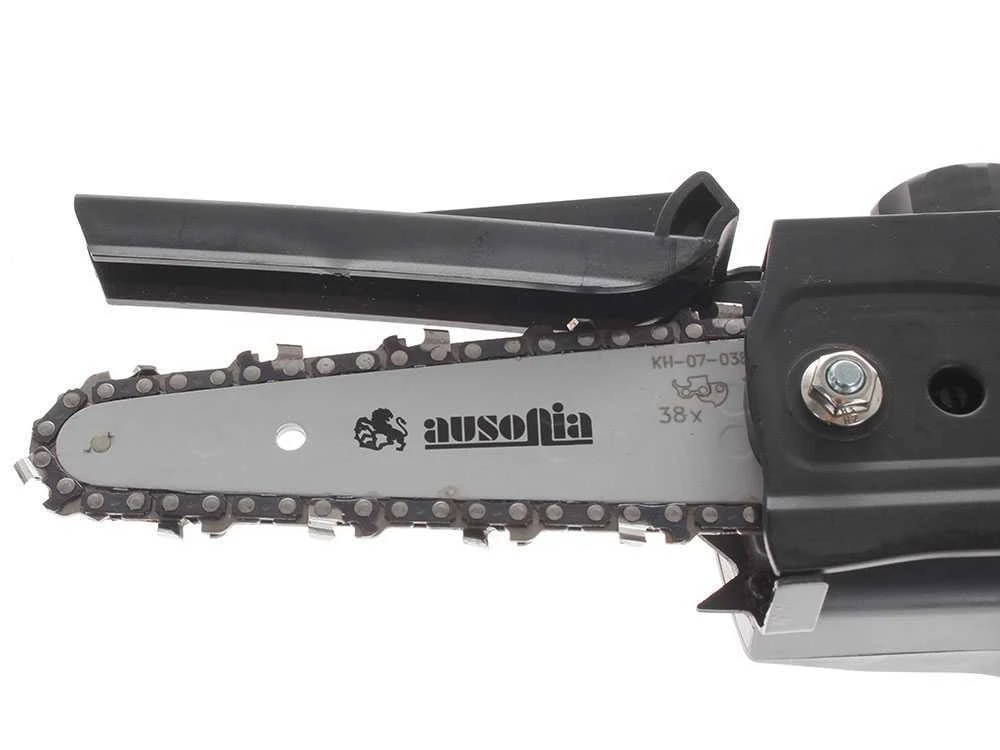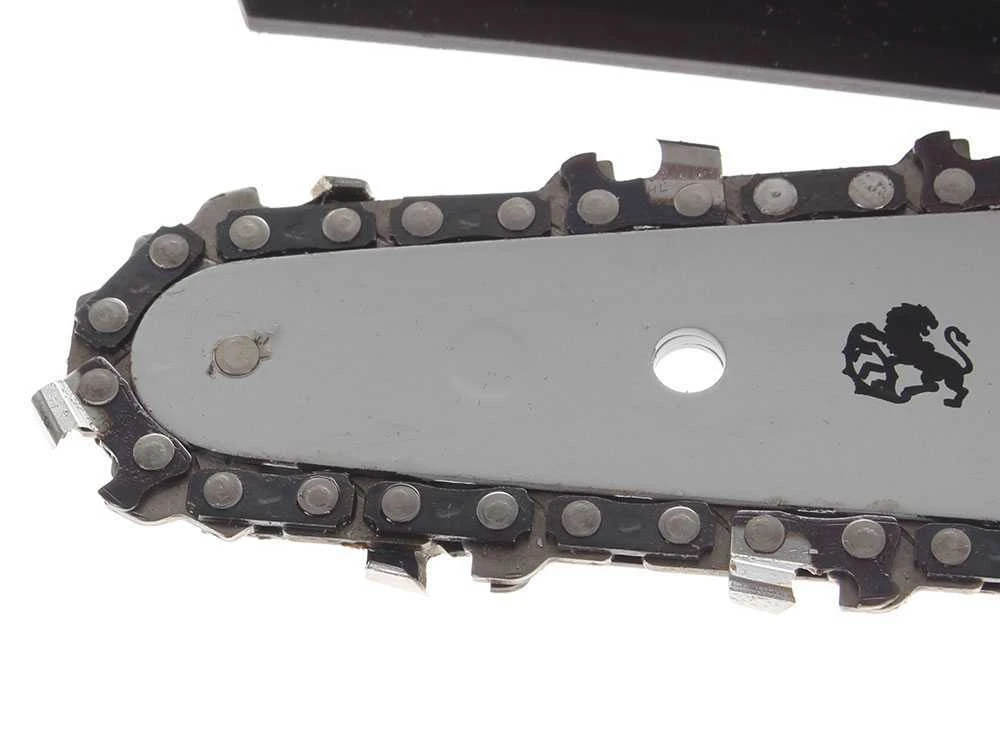 La barre 4 » avec chaine 1/4 » est équipée d’une protection de sécurité contre les rebonds. Entre la lame et le manche se trouve le réservoir d’huile pour lubrification automatique.