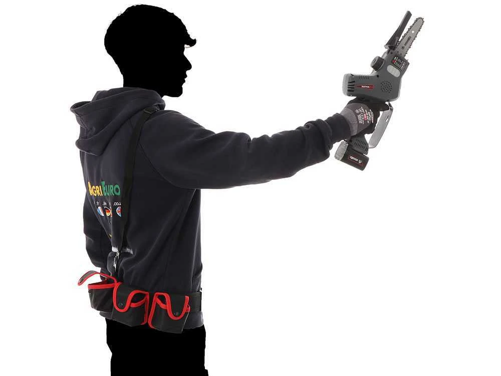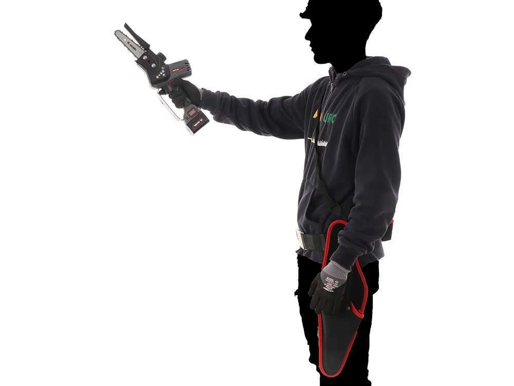 En utilisant la ceinture pratique, il est possible d’avoir 3 batteries à disposition en même temps, permettant ainsi d’utiliser le sécateur aussi longtemps que nécessaire.