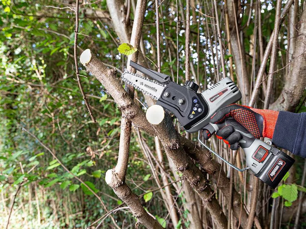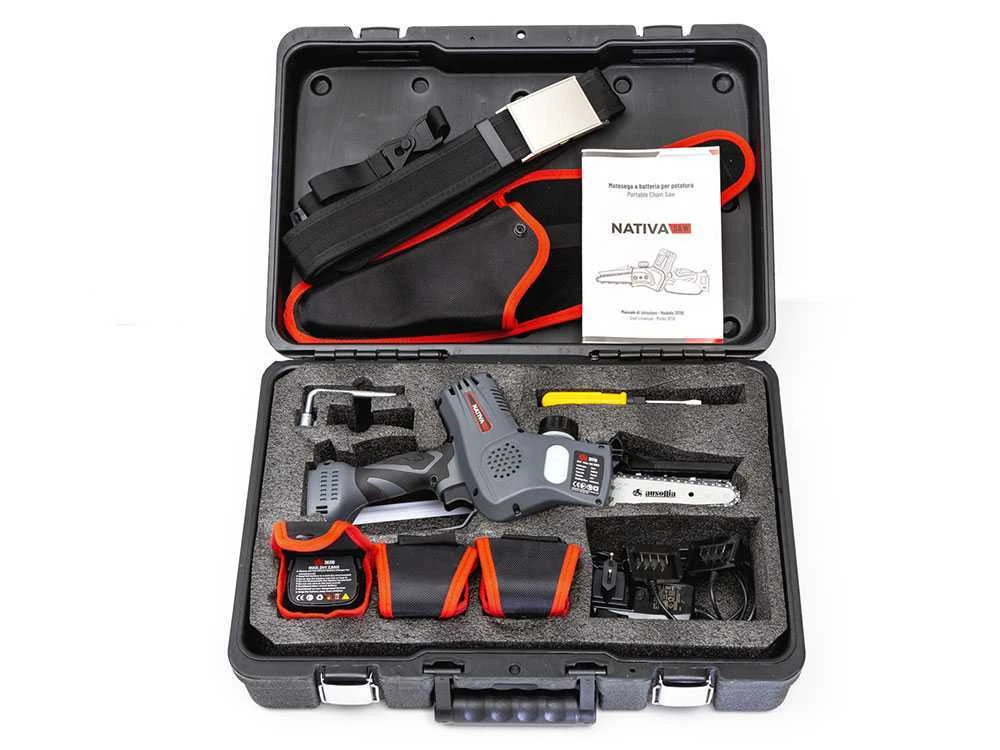 La pratique poignée ergonomique et antidérapante et la gâchette d’activation de la chaîne permettent d’utiliser la scie de manière simple et intuitive. En outre, les dimensions compactes et le poids contenu (1,6 kg seulement) éliminent l’effort.