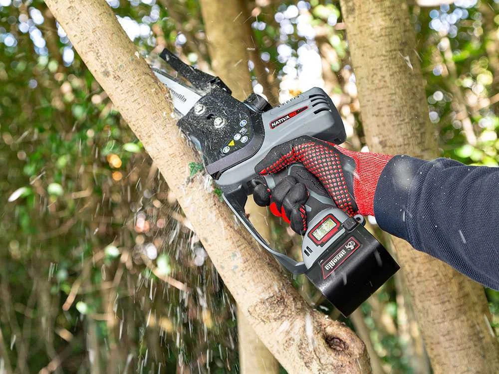 Lélagueuse à batterie Ausonia Nativa Saw est équipée de 3 batteries au lithium de 24V et 2,5Ah qui garantissent jusqu’à 2 heures d’autonomie chacune, vous permettant ainsi d’utiliser l’outil pour des temps de travail encore plus longs.