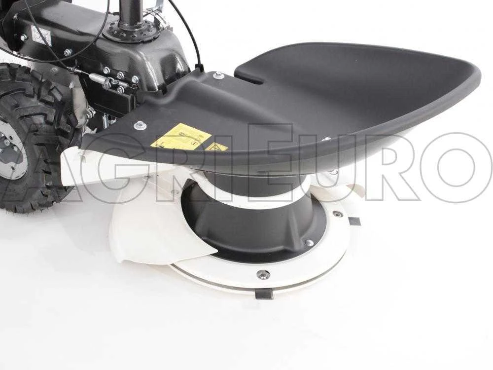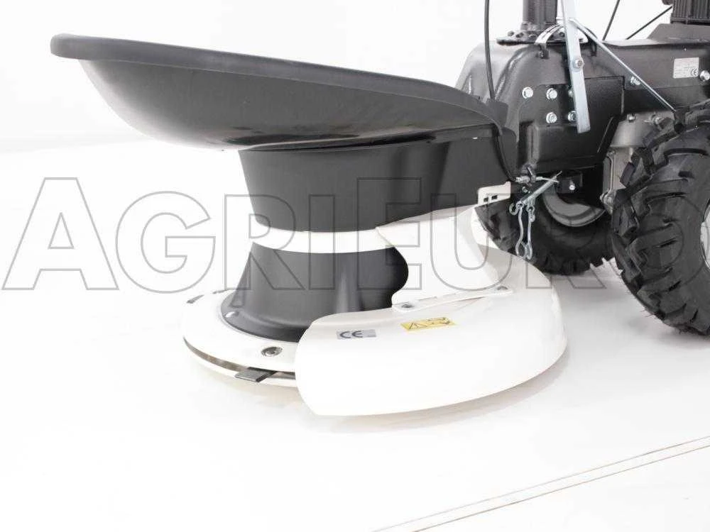 Il s’agit d’une faucheuse rotative thermique autotractée avec roues pneumatiques sculptées à profil agraire dirigées par une transmission à vis sans fin à bain d’huile et dotée de 5 vitesses (3 avant + 2 arrières).