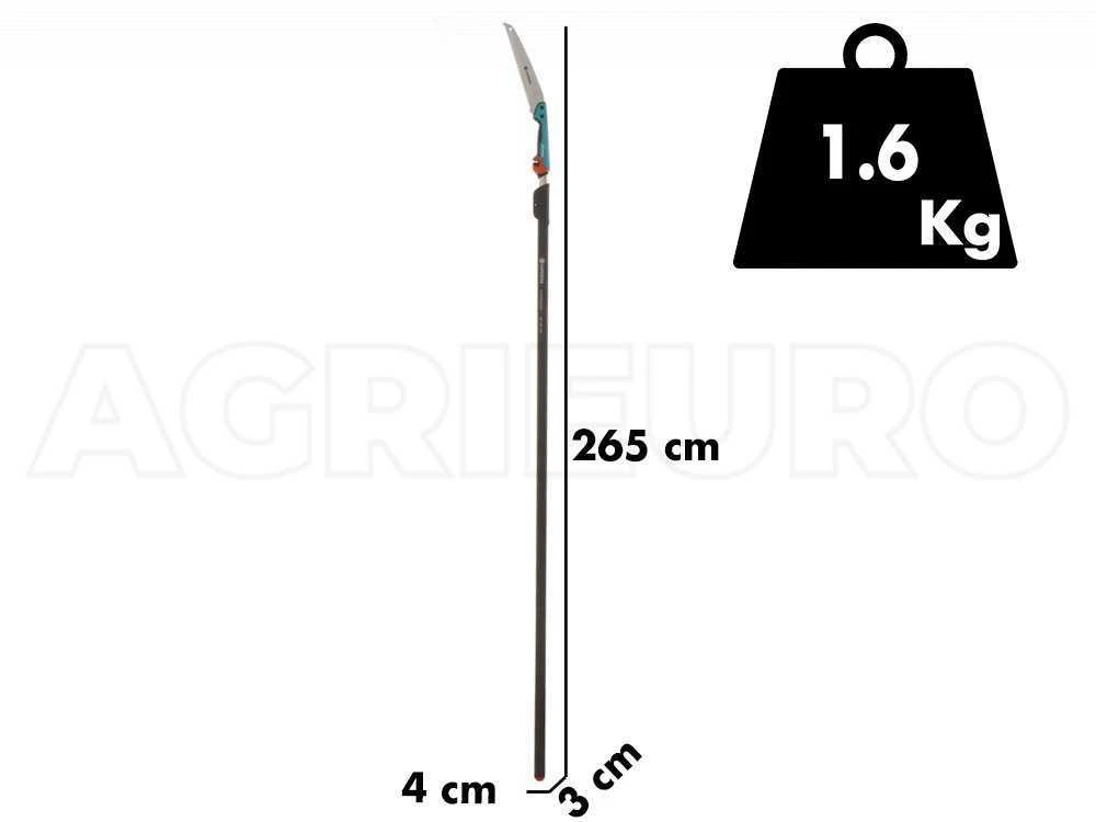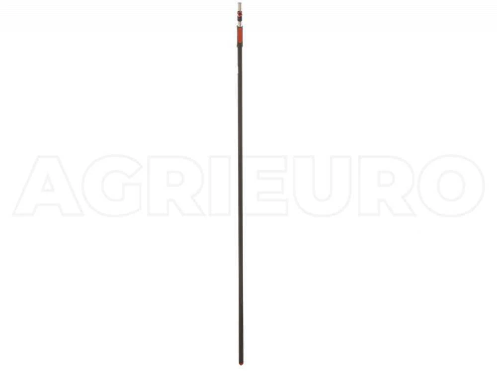 Le système freinant empêche à la partie interne de la perche de glisser brusquement, ce qui lui confère une rigidité et résistance maximale en permettant une utilisation professionnelle pour des travaux en hauteur. La perche télescopique est réglable et va d’un minimum de 210 cm à un maximum de 390 cm (scie incluse).
