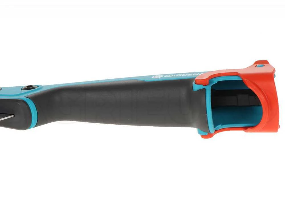 La scie est équipée d’une fermeture de sécurité sur la poignée, qui garantit un raccordement sûr entre le manche et la scie.
