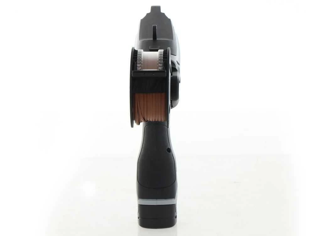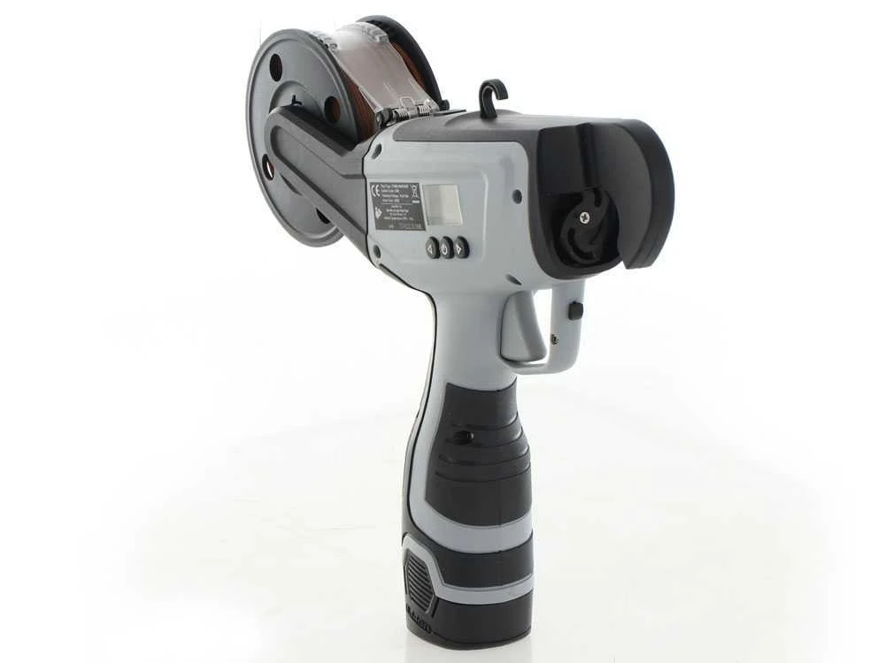 La poignée ergonomique garantit une prise en main confortable et sûre. La bobine se remplace très facilement et grâce au système magnétique, il est possible de contrôler la tension du fil avec précision. Avec affichage du niveau de charge et du nombre de ligatures.