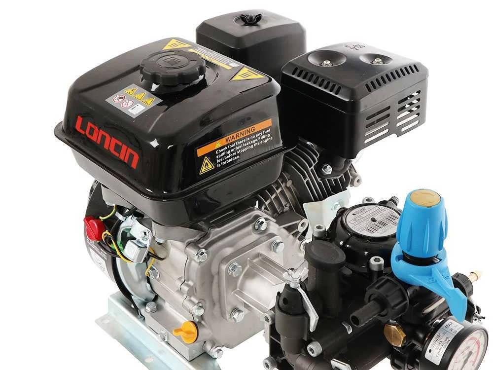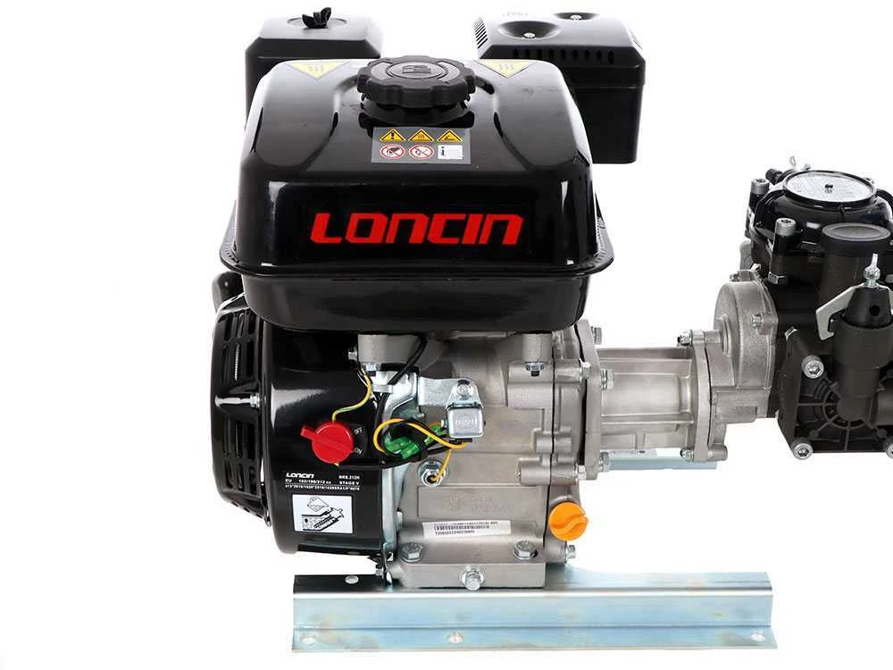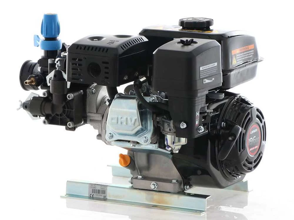 La motopompe possède un moteur essence Loncin avec une cylindrée de 196 cm³ capable d’émettre une puissance de 6,5 HP.