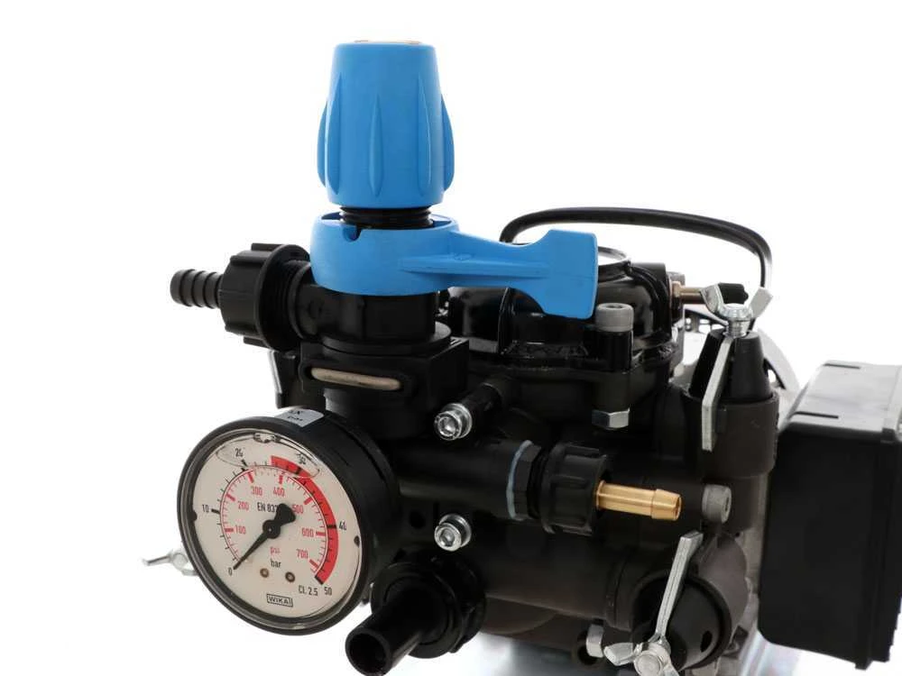 Commande bleue : réglage de la pression (jusqu’à 25 bars).