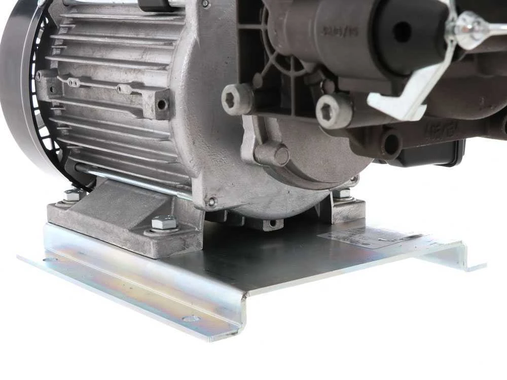 Détail de la base métallique, très large qui permet une excellente stabilité à la pompe équipée de diverses perforations pour tout type d’application.