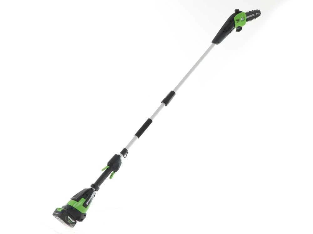 La perche élagueuse Greenworks G48PS est un outil à batterie très polyvalent adapté pour les petits espaces verts.