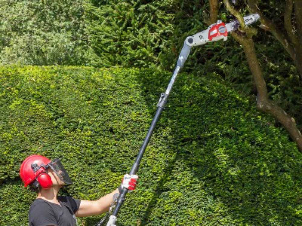 La perche élagueuse à batterie IKRA IAAS 40-25 est utile pour la coupe des branches jusqu’à 4 mètres de hauteur.