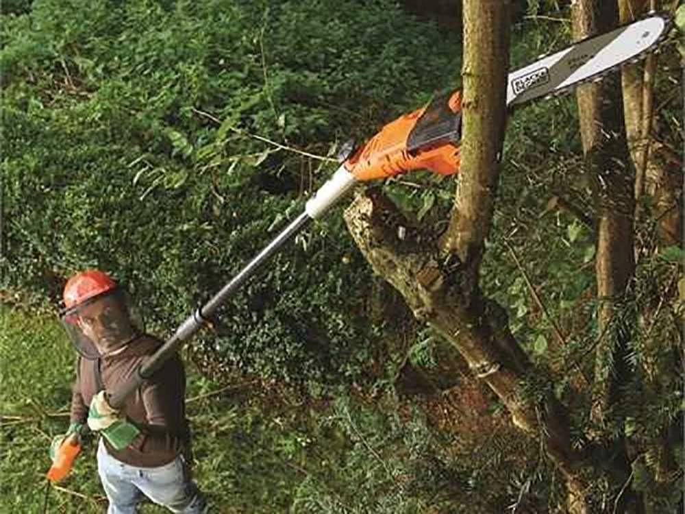 Le moteur de 800W et la vitesse de chaîne égales à 11.5m/s, permettent à la perche élagueuse de coupe également les branches plus épaisses en toute simplicité et autonomie.