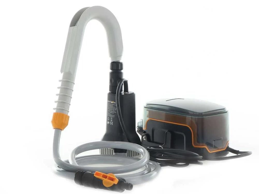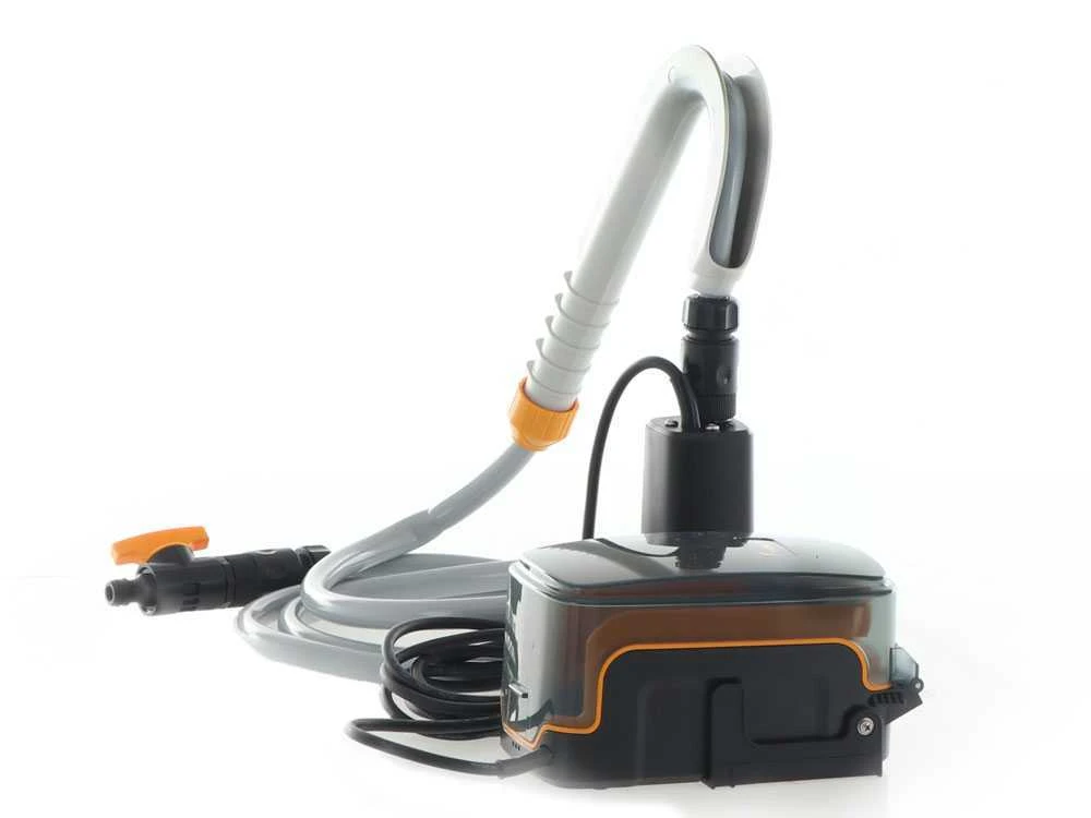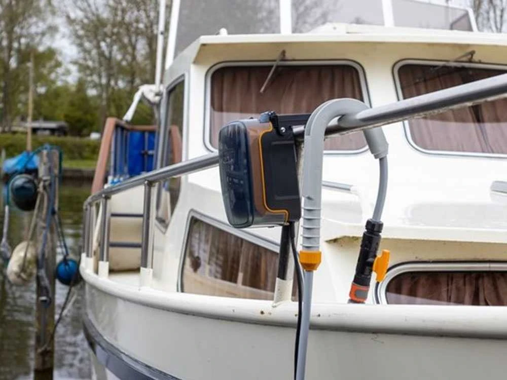 La pompe haute performance gère l’eau avec un débit allant jusqu’à 1800 litres par heure. Le compartiment à batterie séparé résistant aux éclaboussures avec dispositif de suspension et possibilité de montage mural est équipé d’un support de câble pratique sur la coque.