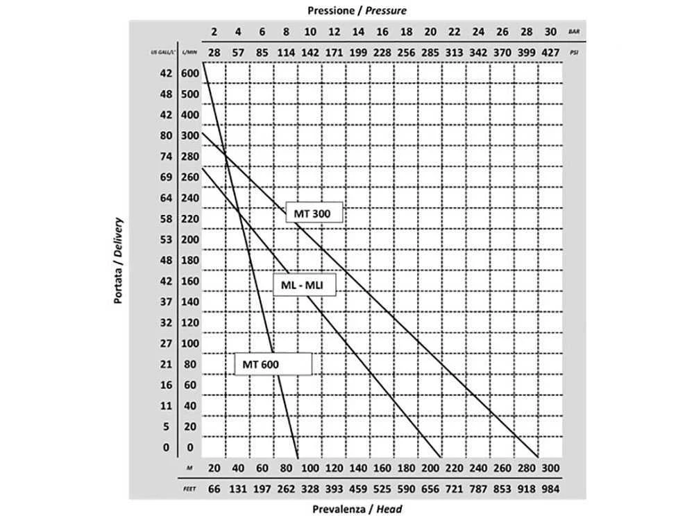 Le tableau indique le débit en litres par minute de nos modèles de pompe applicables au tracteur selon la hauteur de refoulement.