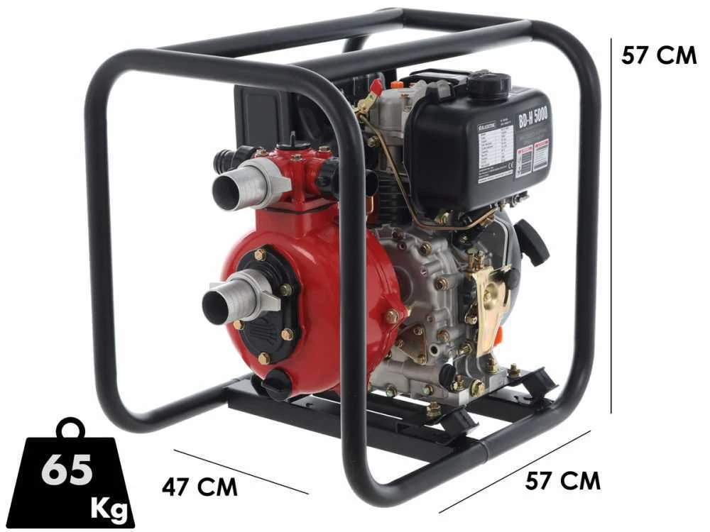 La pompe auto-amorçante permet de transporter une quantité d’eau jusqu’à un maximum de 500 litres par minute. En outre, ce modèle peut pousser des liquides jusqu’à une hauteur maximale de 65 mètres et les aspirer jusqu’à 8 mètres de profondeur. Les performances élevées et les faibles consommations sont garanties par le puissant moteur diesel de 296 cc qui fournit une puissance de 6 Hp.