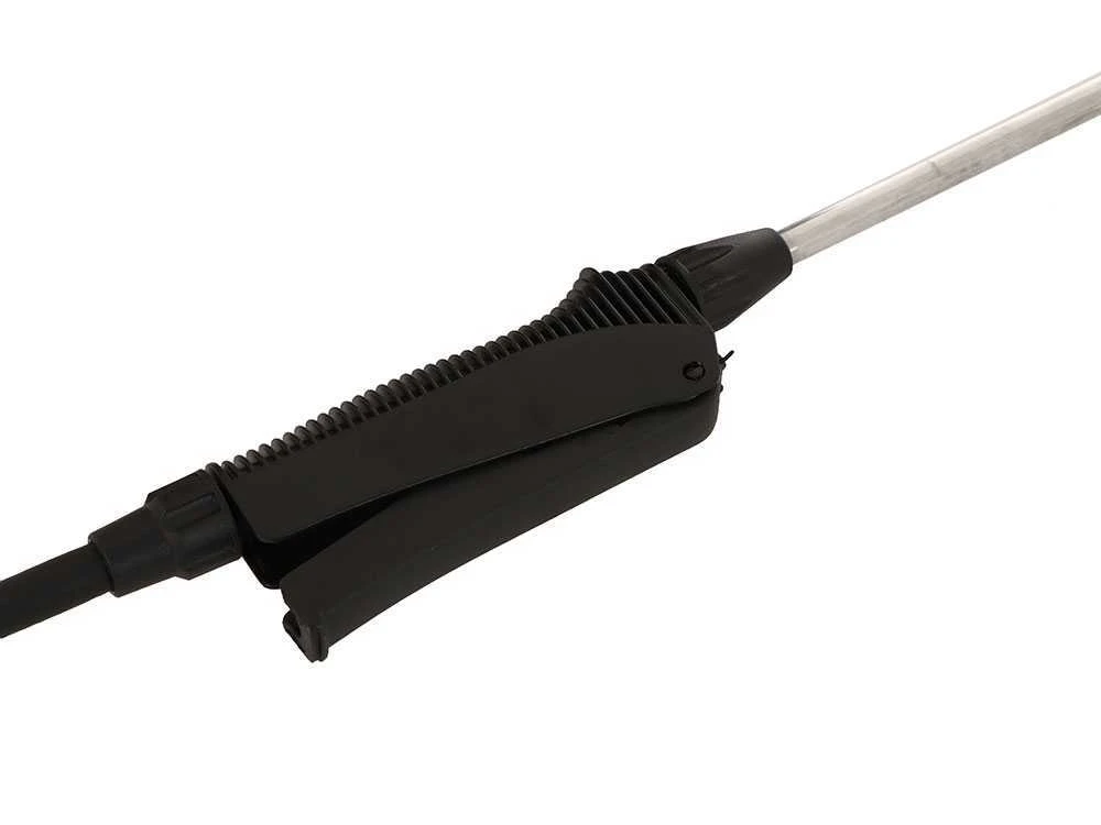 La lance est en aluminium et a une buse en laiton réglable pour la pulvérisation.