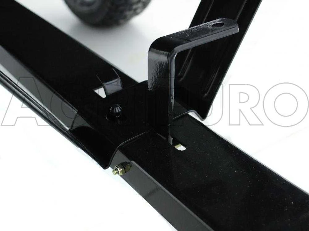 Détail du crochet d’attelage qu’il faut fixer à la tondeuse