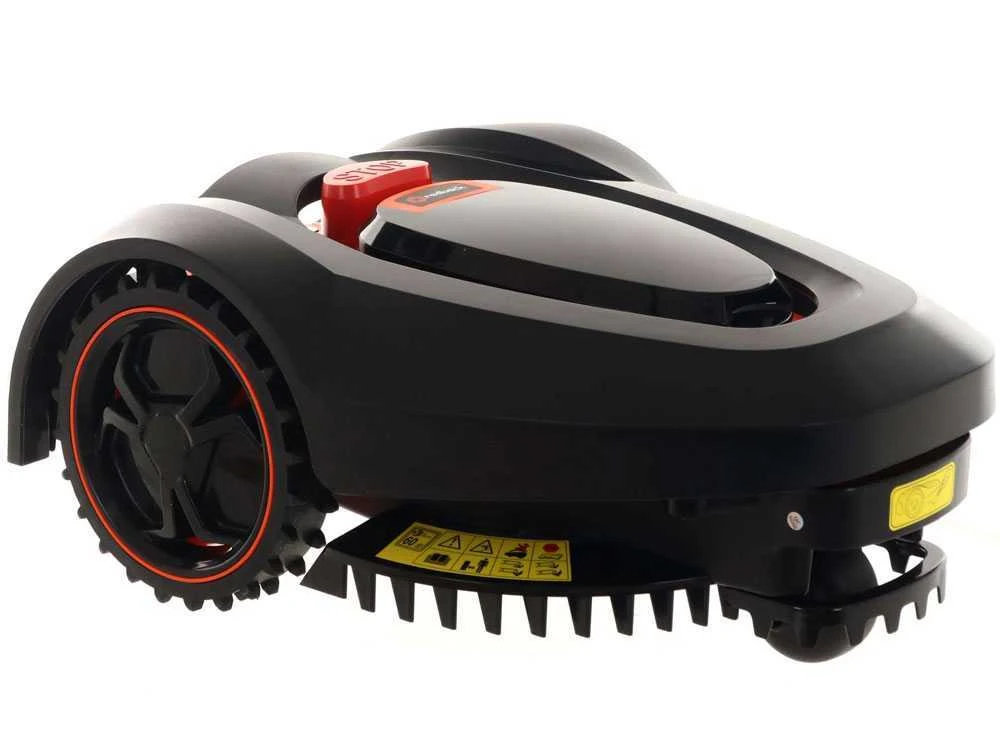 - SENSIBLE: Doté de capteurs d’obstacles/contact, lorsque le robot relève la présence d’un obstacle, il va en arrière et change de direction. (Si celui-ci ne trouve pas de chemin en 3 secondes la tonte s’arrête, si ensuite il ne trouve toujours pas d’autre sortie en 10 secondes le robot s’éteint). De plus lorsque le robot est soulevé il s’arrête en autonomie. Enfin, le capteur d’inclinaison arrête le robot lorsque la pente dépasse les 30°.