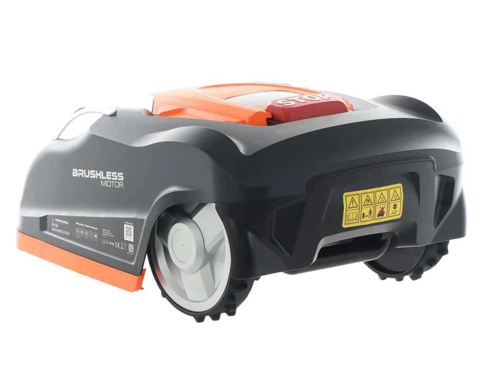 Le robot est équipé de deux roues motrices à traction élevée qui lui permettent une adhérence améliorée même sur des pentes difficiles. Alors que les deux roues pivotantes à l’avant stabilisent la tondeuse robot.
