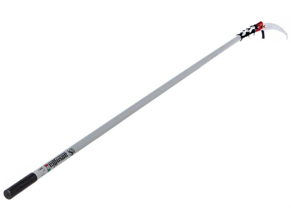 La perche télescopique est réglable sur deux sections d’un minimum de 270 cm jusqu’à un maximum de 630 cm (scie incluse).