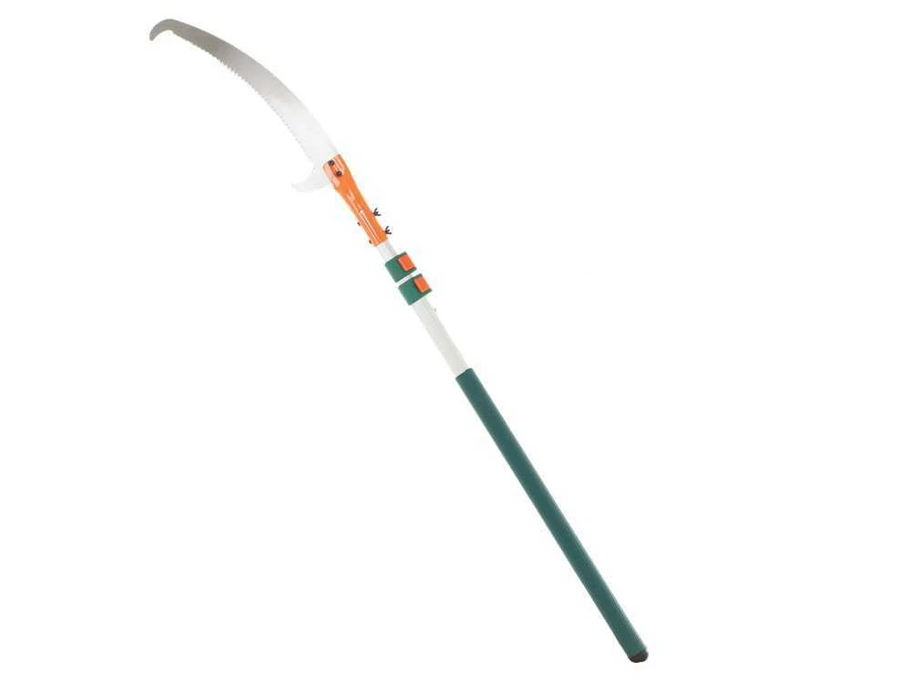 La scie de jardin sur perche télescopique GeoTech 2.5m PG250-STP 155-250 avec manche télescopique est le produit idéal pour des travaux tels que la taille de la vigne, des oliviers et des arbres de verger. Sa lame est légèrement recourbée rendant la coupe simple et précise.