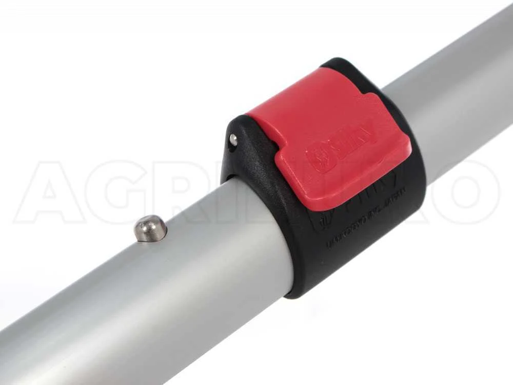 Son réglage est facile et immédiat. Il suffit de relever le levier disponible sur le dispositif de blocage, appuyer sur le bouton, rallonger la perche jusqu’à la longueur désirée puis rabaisser le levier pour la fixer.