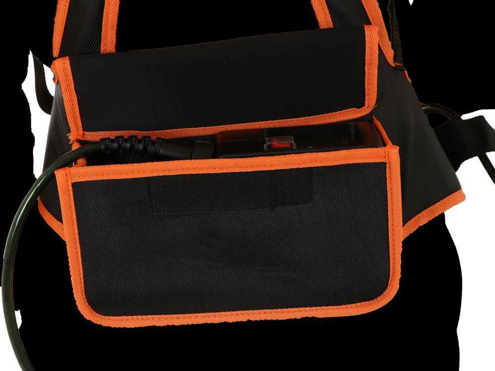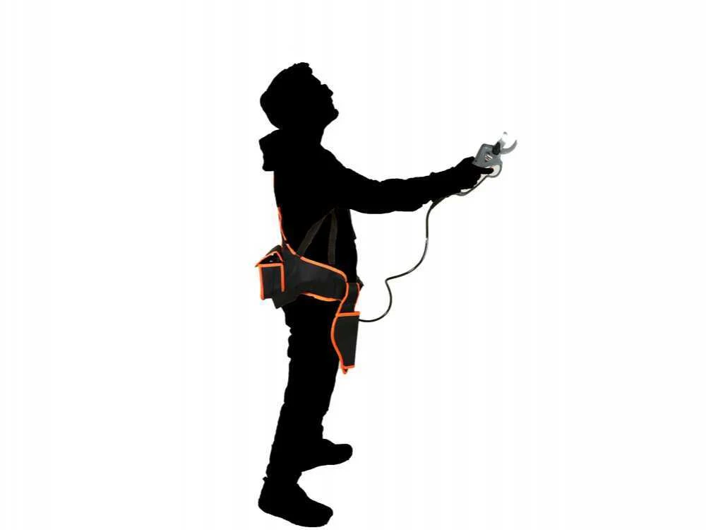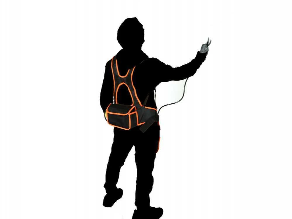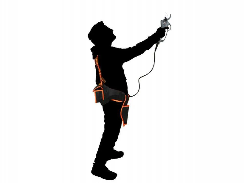 Très compacte: la batterie au lithium se trouve à l’intérieur d’une poche spéciale dans le harnais fourni. Cela permet une grande maniabilité du sécateur et une grande liberté de mouvements