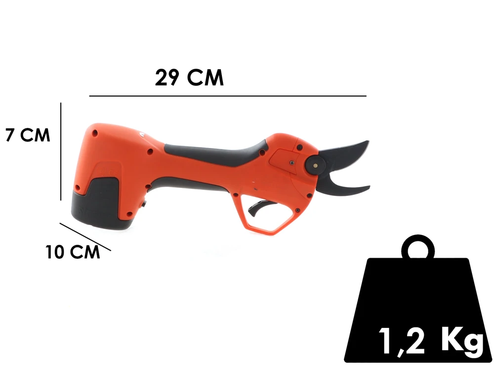 Le sécateur de taille à batterie 16.8V Vulcano E-30 TP est un sécateur à batterie aux ions lithium conçu pour la taille des arbres, de la vigne, des arbustes, des buissons etc. Parfait pour les arbres à fruits comme les oliviers, les amandiers, les pistachiers et les citronniers.