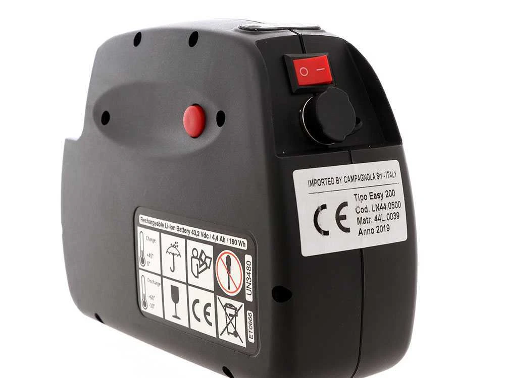 Batterie aux ions de lithium 4.4 Ah 50V, avec une puissance parmi les plus importantes du marché, elle contient 193 watts de puissance.