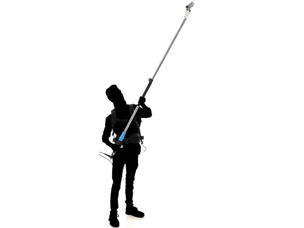 Sécateur sur perche, d’environ 200 cm d’extension pour des travaux à hauteur élevée.