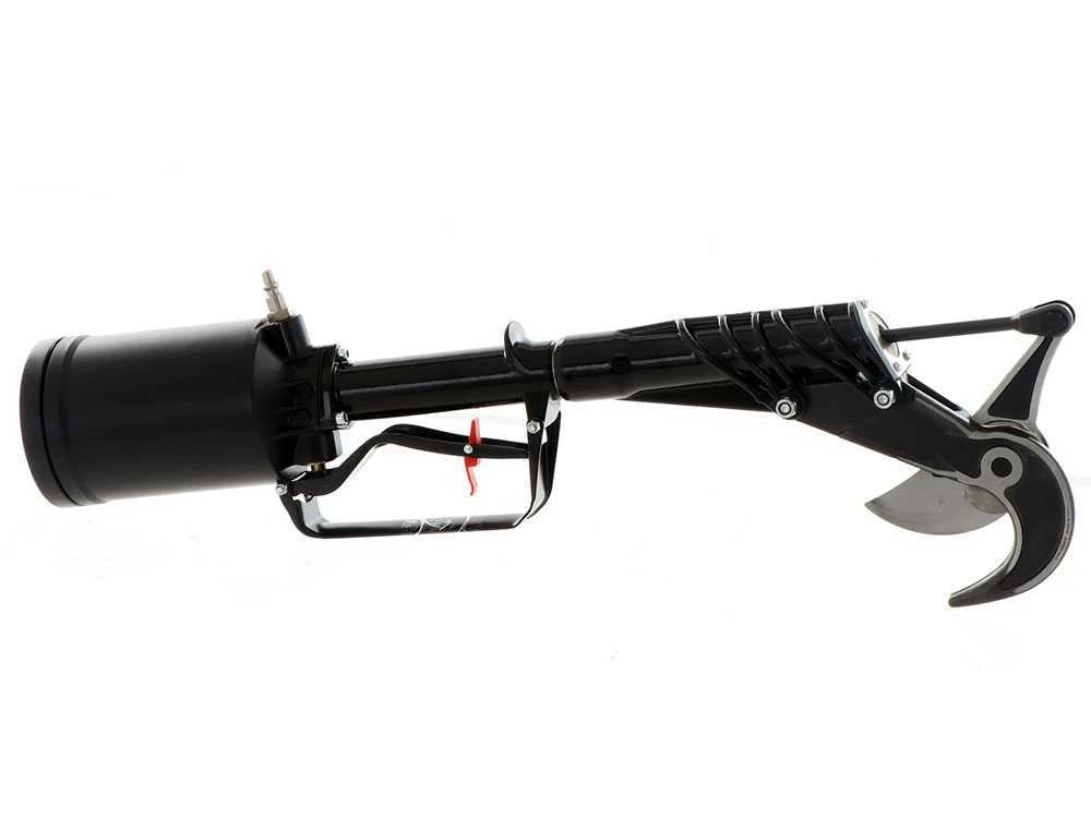 Le sécateur est activé en appuyant sur le levier, après avoir déverrouillé le dispositif de sécurité de la paume. L’énergie d’entraînement est fournie par l’air comprimé et envoyée à l’entrée d’air à travers les tuyaux.