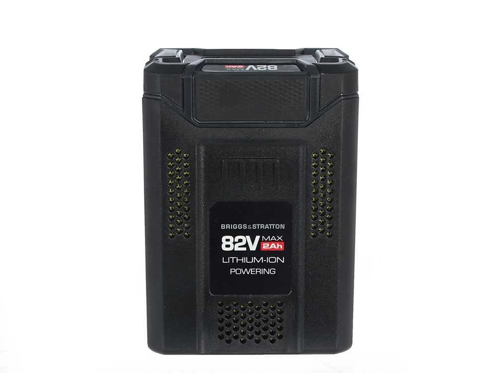 Équipé de batterie Briggs&Stratton rechargeable au lithium ion de 82 volts à 2 Ah et se recharge très rapidement (environ 1demie heure).