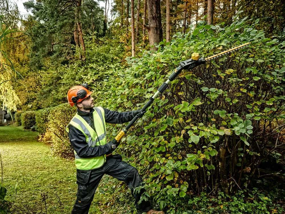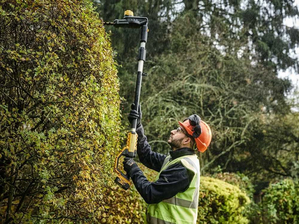 Adapté pour l’entretien des petits espaces verts, ce taille-haies n’a pas besoin de carburant ou de câbles mais est alimenté par des batteries 18V DeWalt.