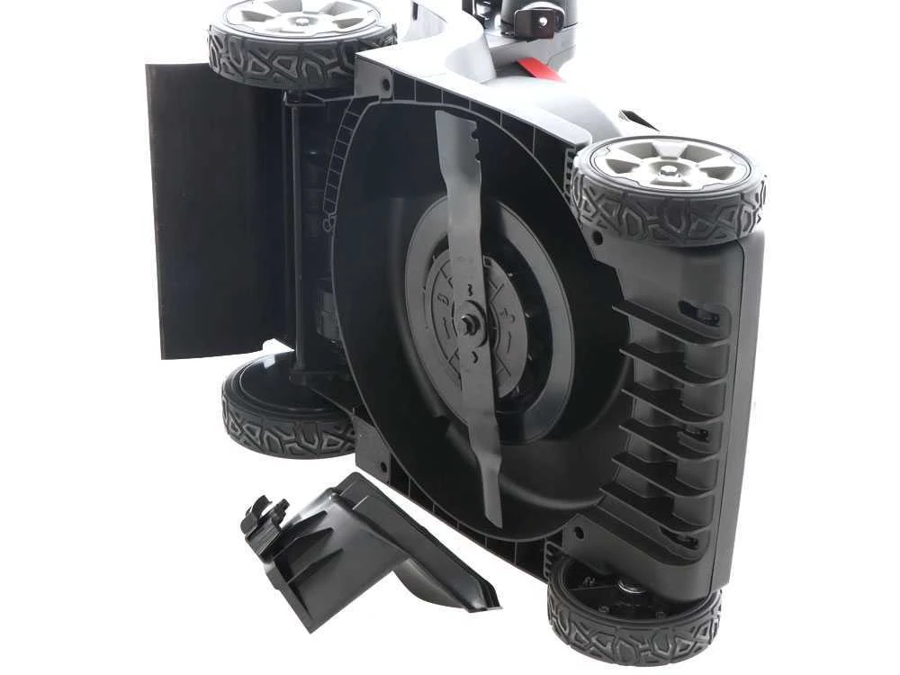 La tondeuse à gazon est équipée d’un bac en plastique de 60 litres, très facile à retirer et à vider.