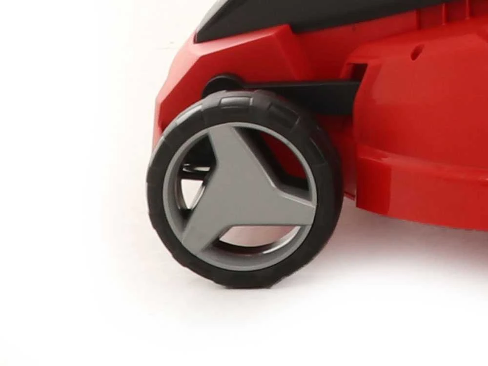 Le réglage est simple et s’effectue à travers les roues de la tondeuse à gazon.
