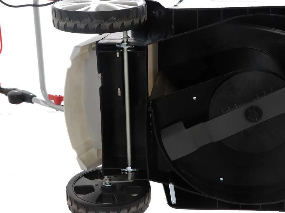 Réglage de la hauteur de coupe de manière simple et rapide, où vous pourrez choisir parmi 6 hauteurs de coupe disponibles allant de 28 mm à 68 mm, grâce à un simple mécanisme à ressort.